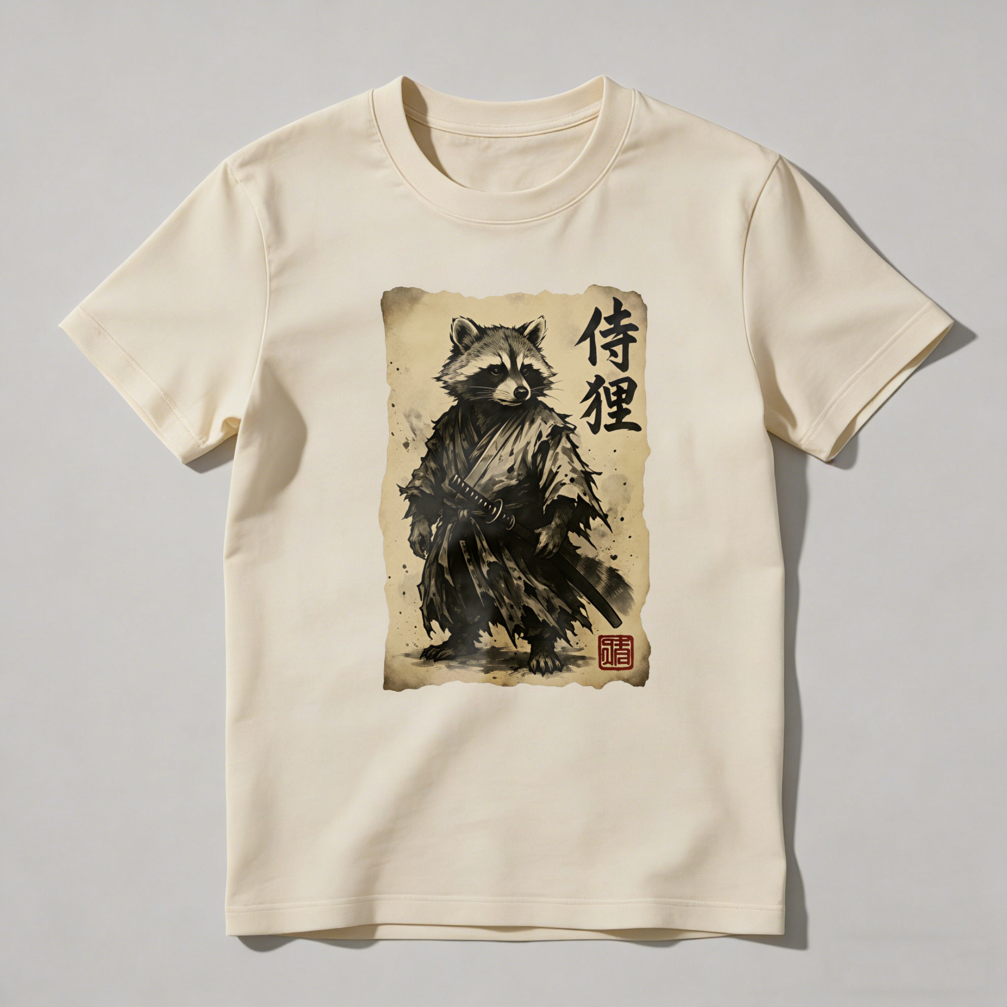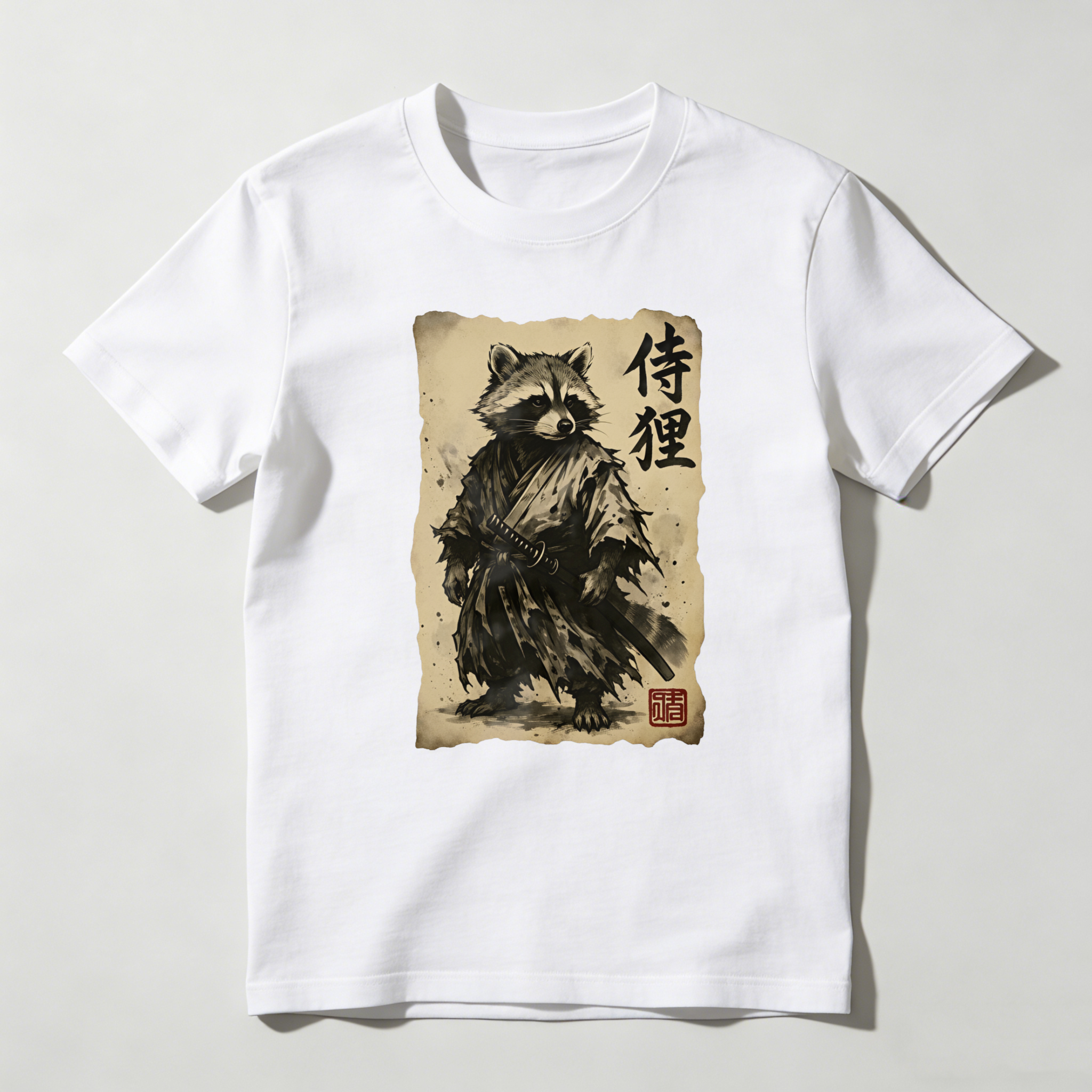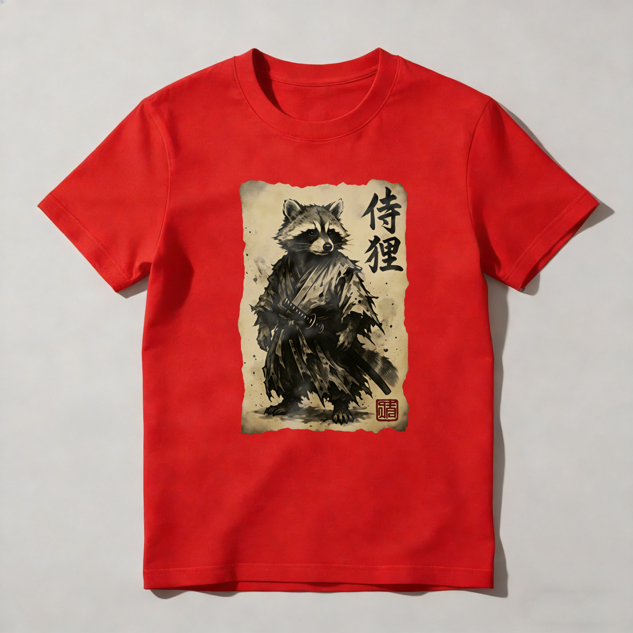Raccoon Samurai With Sword And Scroll tshirt 100% cotton