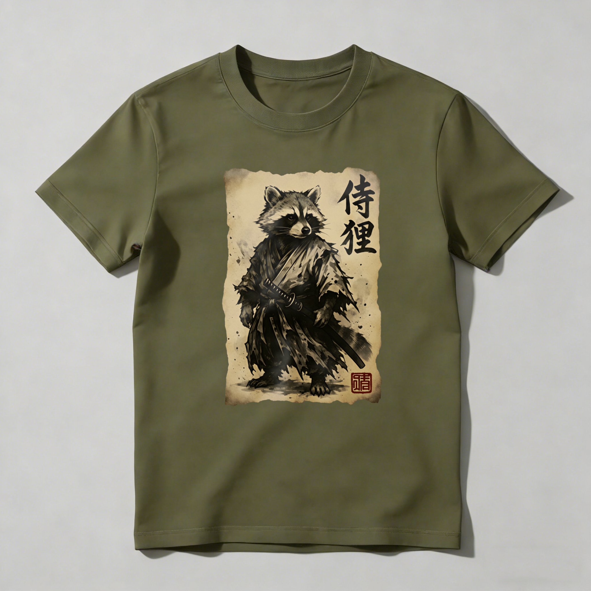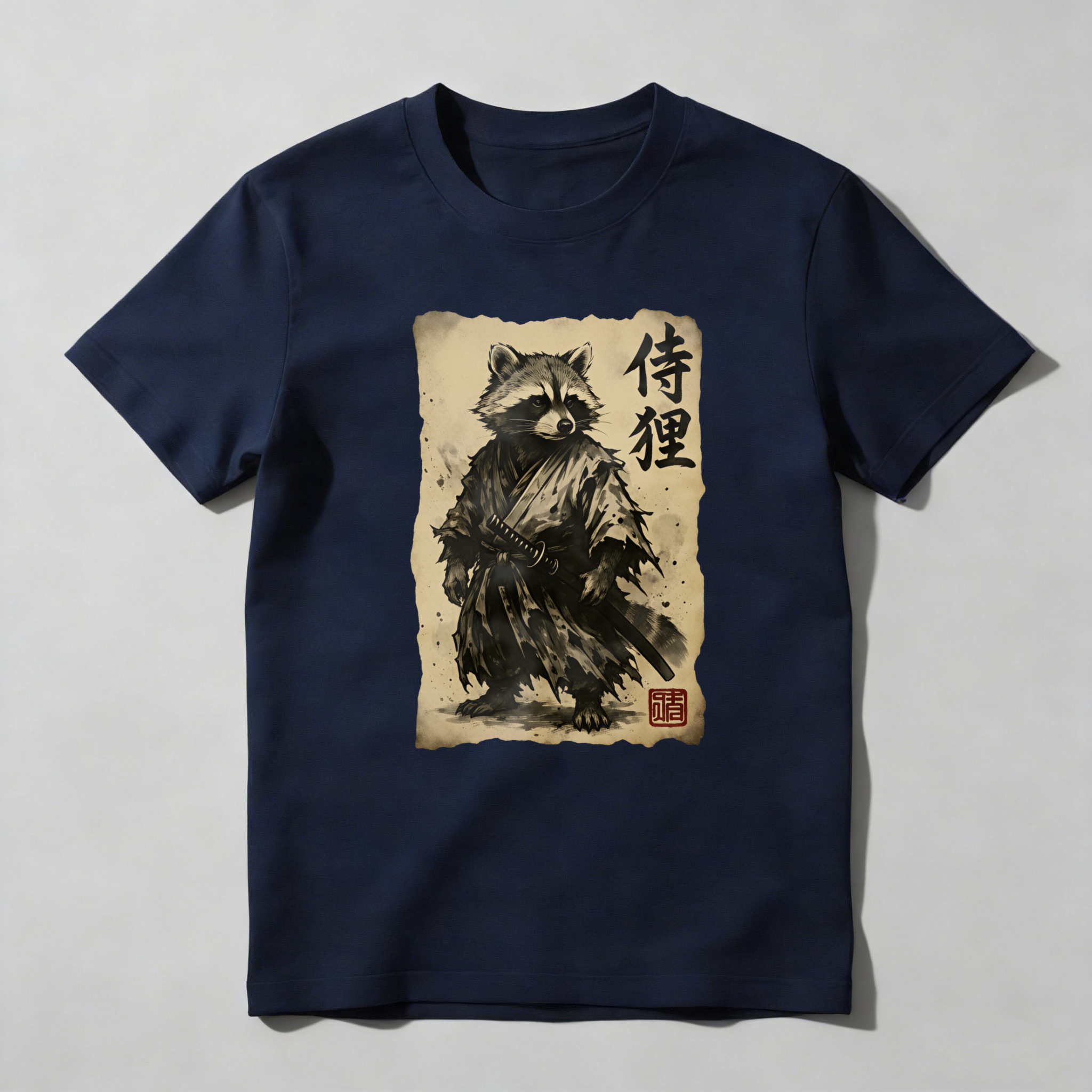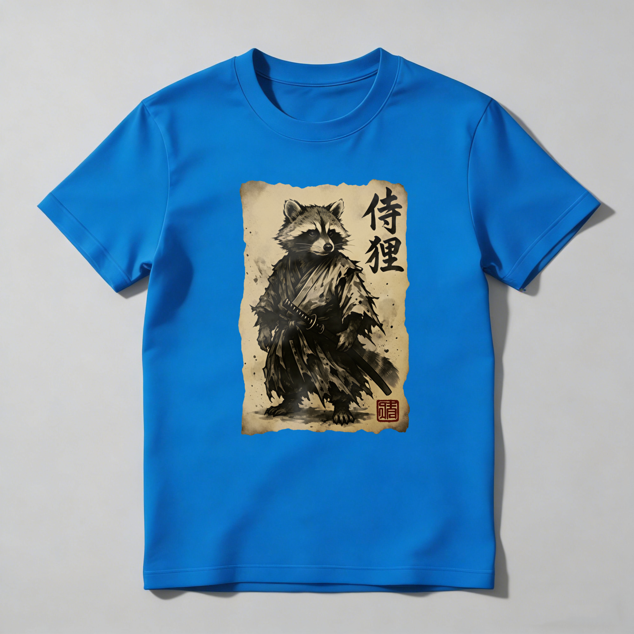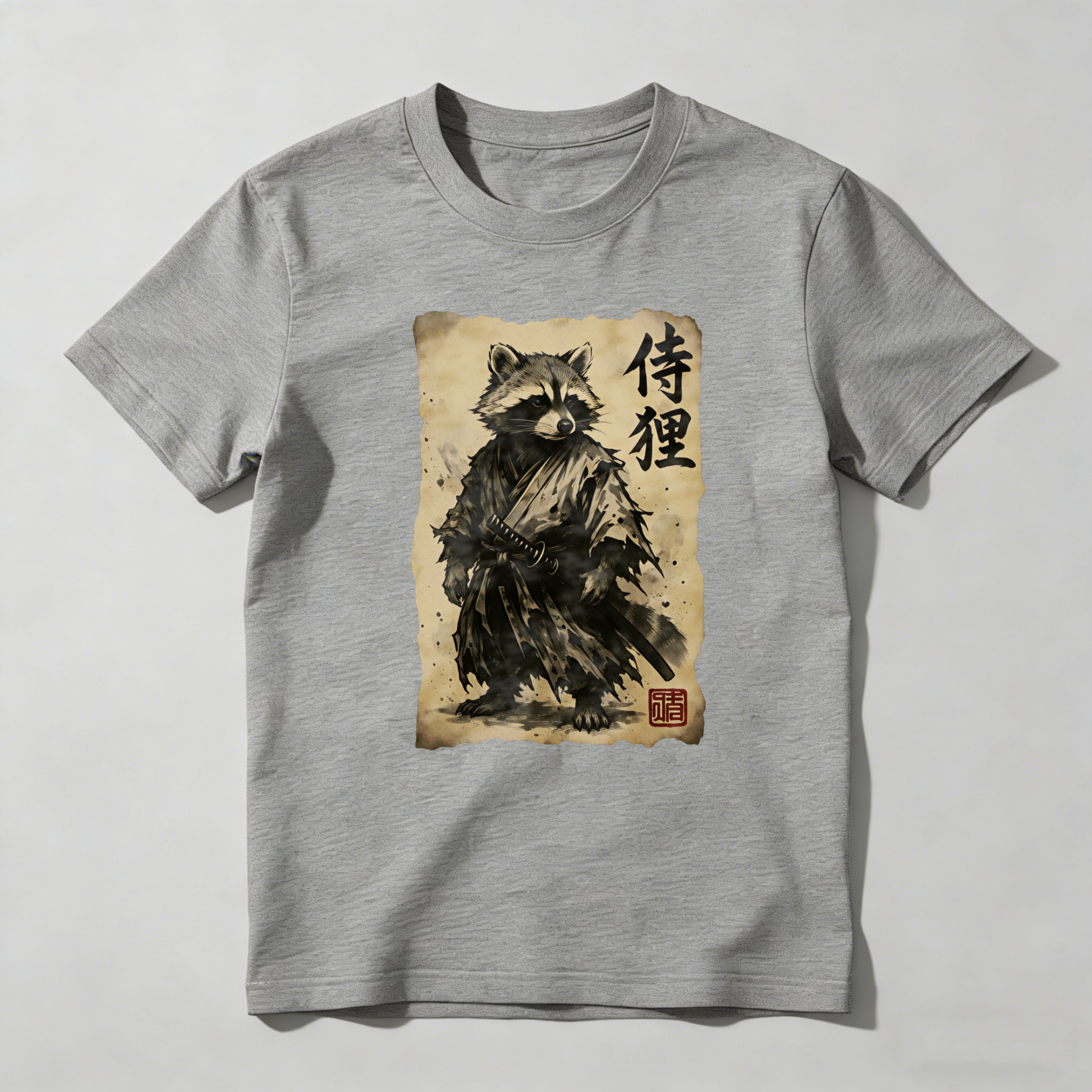 Raccoon Samurai With Sword And Scroll tshirt 100% cotton